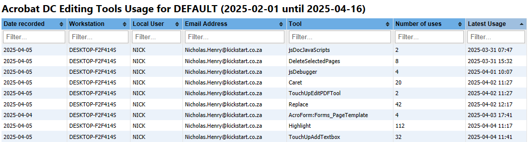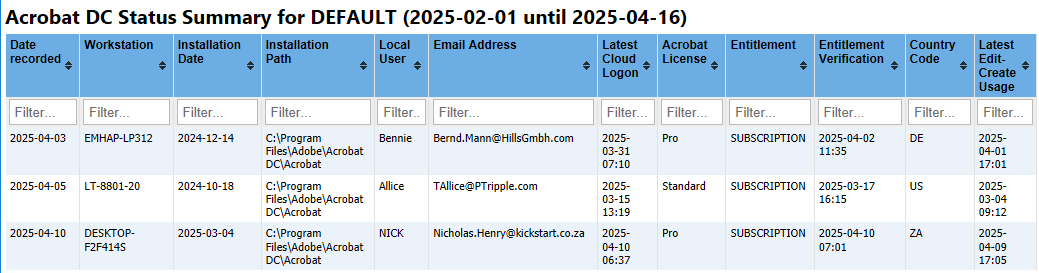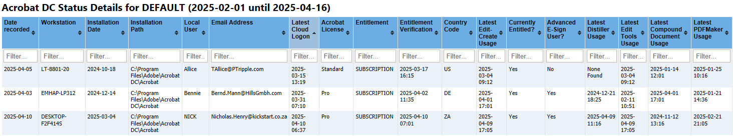 Are you needing usage statistics for Adobe® Acrobat® Document Cloud (DC) Usage on your Windows® workstations? Quickly determine where Acrobat® is being used for editing and creating of PDFs. Now you will have needed insights into your Acrobat® estate!